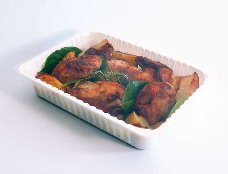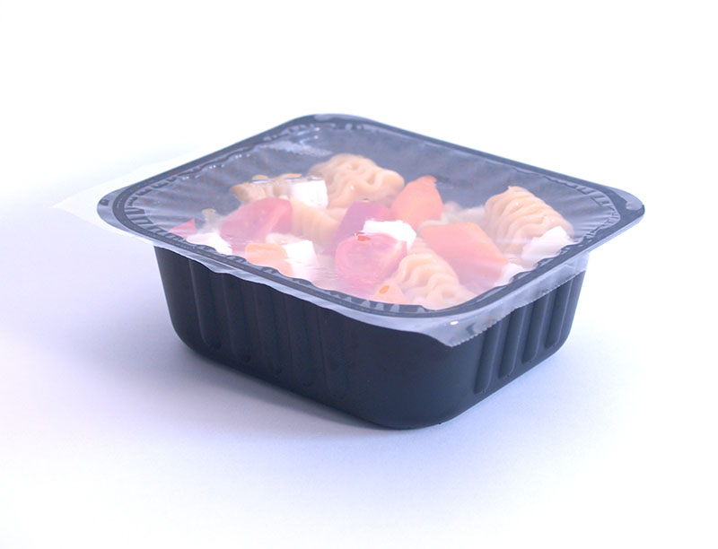 Film Reel, antifog and not, protected inside the machine. It is possible to obtain packs, trays and vessels, made of PP-CA-APET-CPET-PLA.